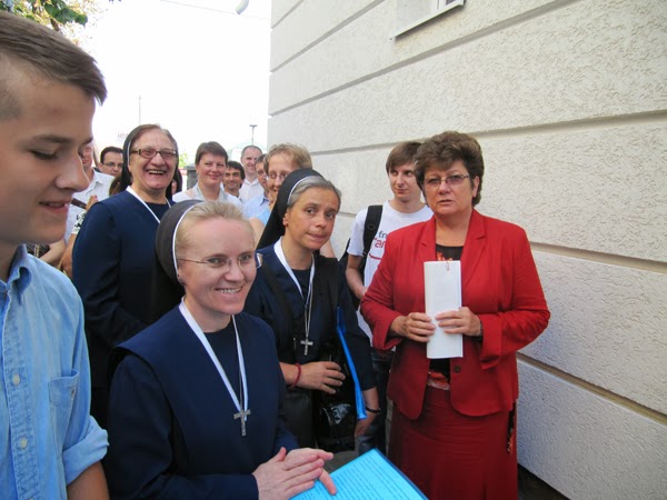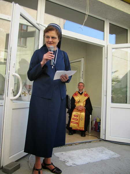 Від імені Генеральної Настоятельки с. Терези Слоти привітального листа зачитала с. Дженес Солюк, вислужена Головна Настоятелька. Слід згадати, що вона була присутньою, коли 11 вересня 2008 року був освячений камінь майбутнього «Дому надії». Тому бути на цьому святі для неї є великою радістю. Генеральна Настоятелька згадала фрагмент історії Згромадження, коли до Співзасновника Згромадження підійшли дівчата і запитали: «А коли б хтось із бідних дівчат захотів посвятити себе Богові, то для них не було б місця?» Ці слова і стали поштовхом до заснування Згромадження сестер Служебниць, яке здійснює цю харизму до сьогодні.